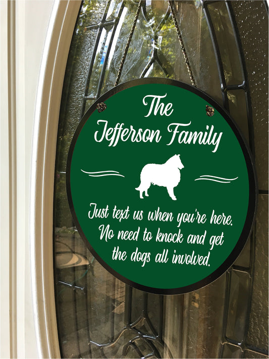 TEXTDOGS FAMILY CIRCLE sign - Just text when here. No need to knock and get dogs all involved - 11.5"x 11.5" - 1/2" thick pvc w/hanging cord