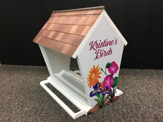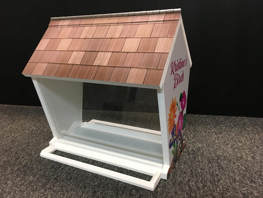 Deluxe Bird Feeder w/ Personalized Name and 9 choices of Beautiful Graphics | Solid Building Grade PVC | 3 Mounting Options | Lasts Years
