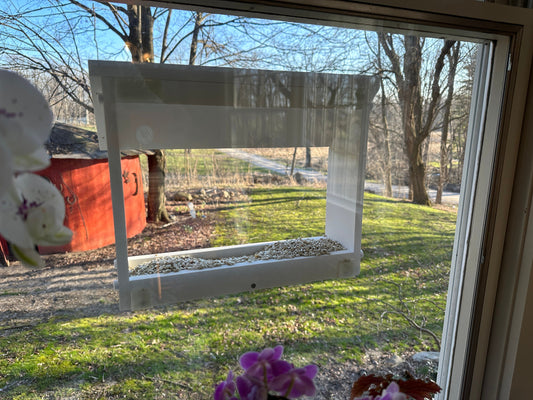 Beautiful Window Bird Feeder Solid Building Grade PVC Lasts Years - Can Be Filled From Inside or Outside