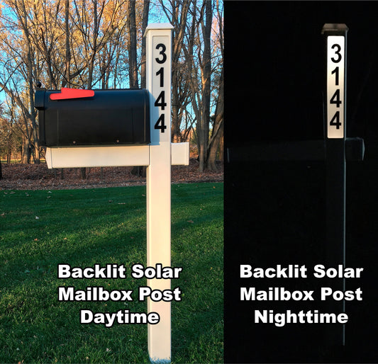 SOLAR ADDRESS Mailbox Post | Led | Illuminated Address Sign | Solar Powered Street Number Post | Lighted Yard Sign | White or 9 Colors