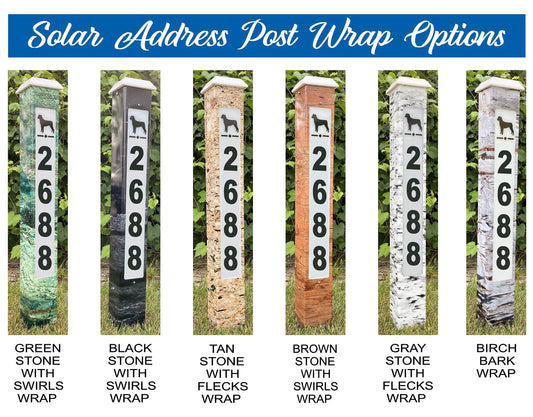 SOLAR ADDRESS Mailbox Post | Led | Illuminated Address Sign | Solar Powered Street Number Post | Lighted Yard Sign | 6 Wrap Options