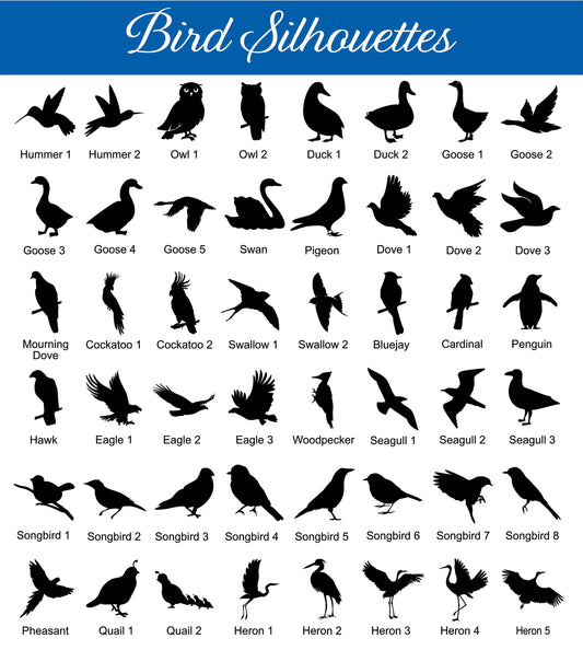 BIRD SILHOUETTES - 2 Sizes, Aluminum Composite Metal Cutout Never Rusts - Baked On Finish Lasts For Years
