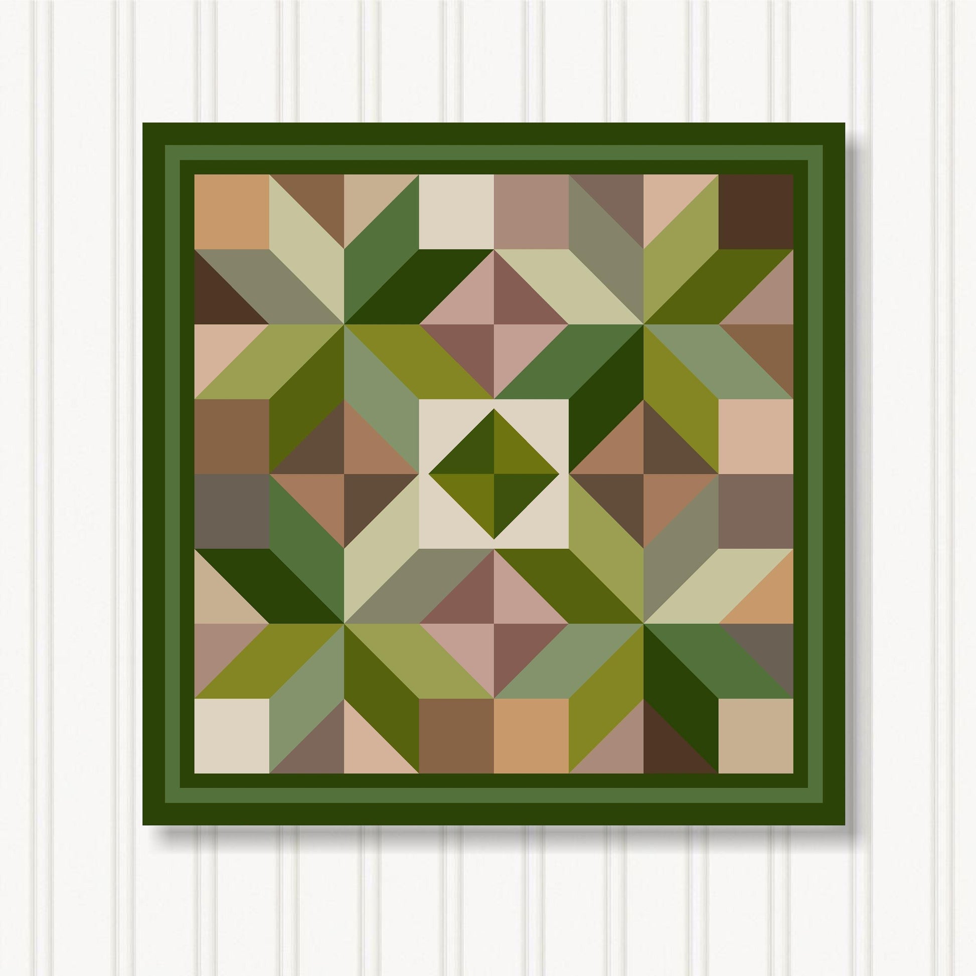 Our indoor barn quilts are crafted from 3/4" particle board which makes them thick and sturdy. The Barn Quilt Indoor Canvas Squares and printed with UV Ink on archival canvas that creates a beautiful satin finish. The canvas is stretched around the board and finished with museum quality edges. We include hangers on the back of our barn quilt canvases for mounting them on the wall.