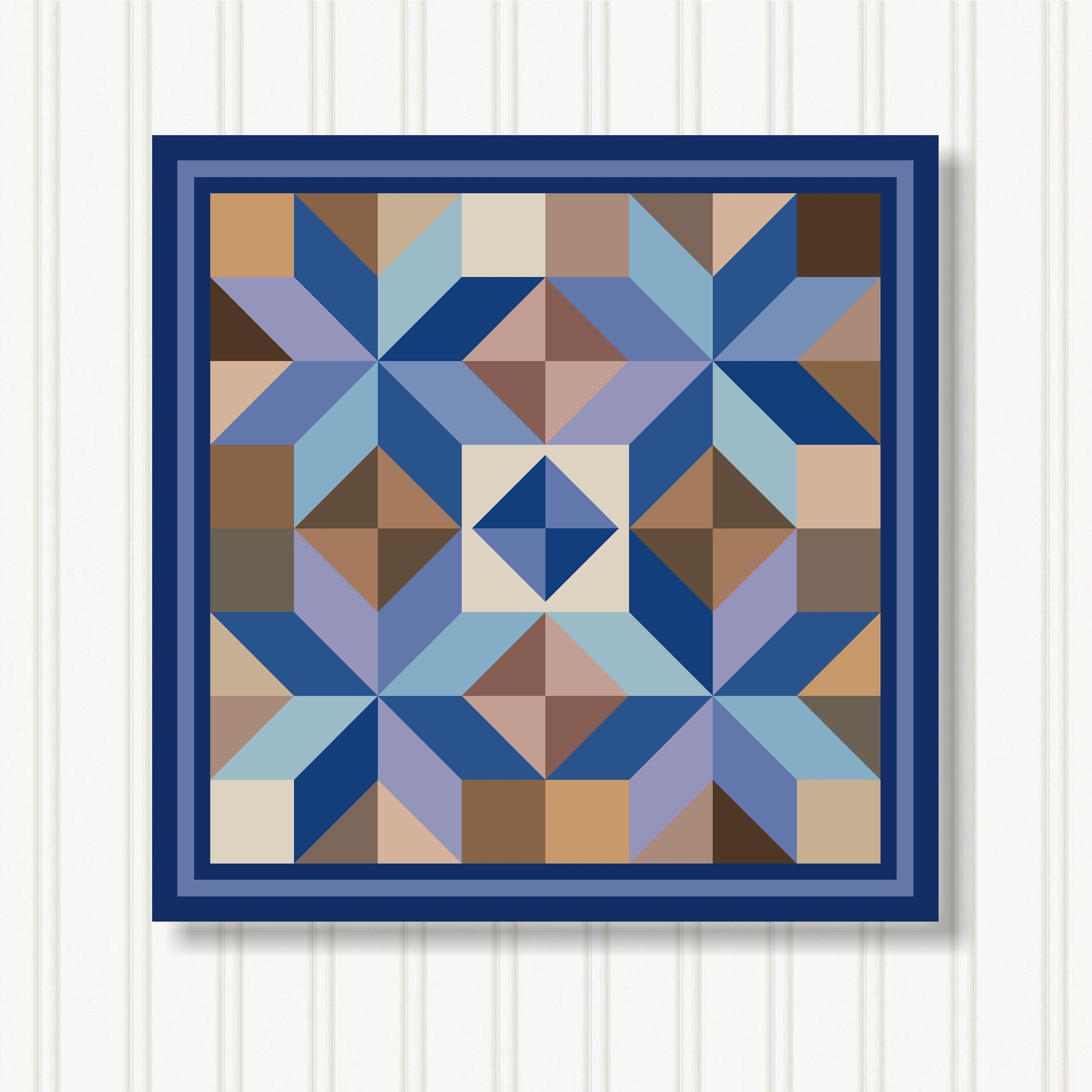 Our indoor barn quilts are crafted from 3/4" particle board which makes them thick and sturdy. The Barn Quilt Indoor Canvas Squares and printed with UV Ink on archival canvas that creates a beautiful satin finish. The canvas is stretched around the board and finished with museum quality edges. We include hangers on the back of our barn quilt canvases for mounting them on the wall.