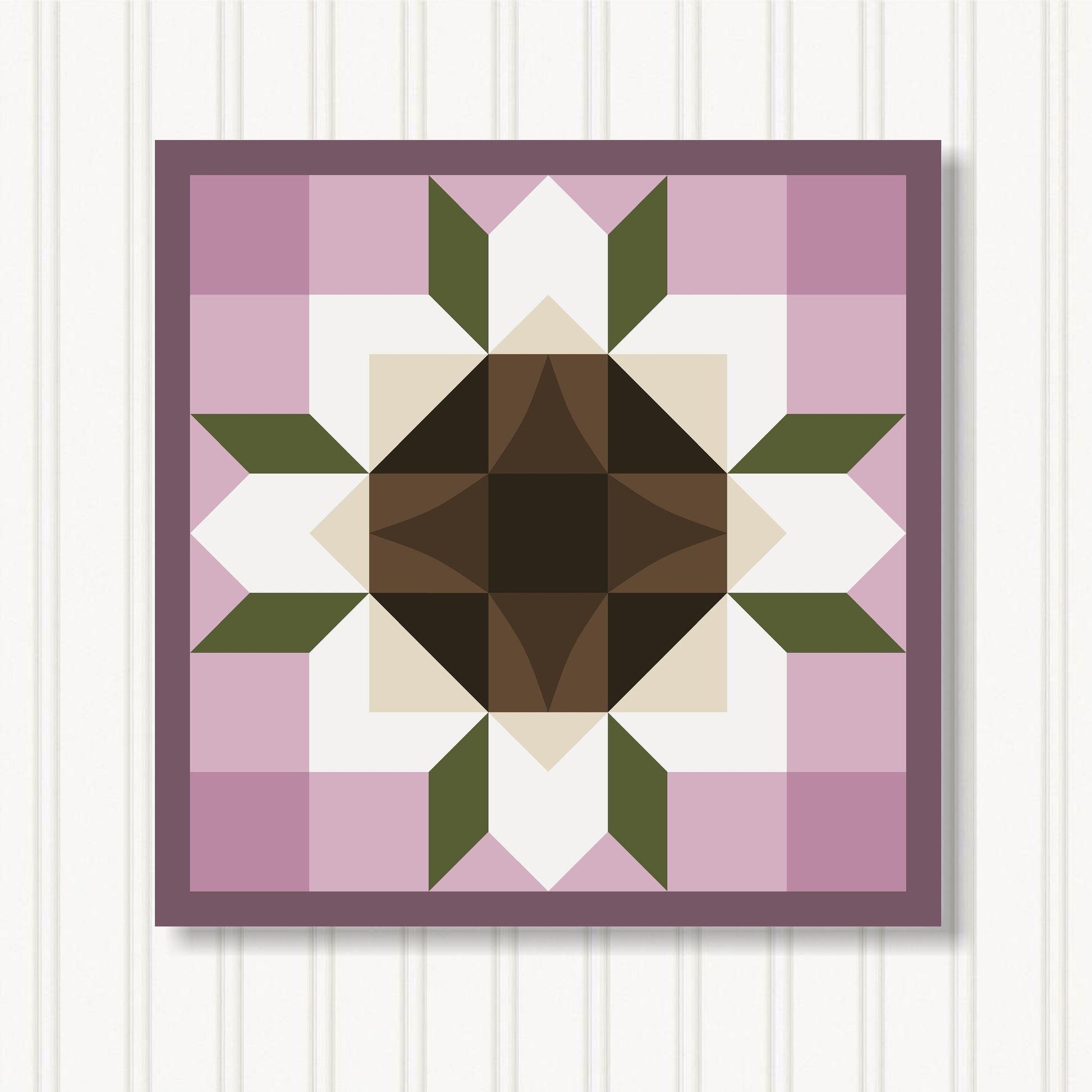 Our indoor barn quilts are crafted from 3/4" particle board which makes them thick and sturdy. The Barn Quilt Indoor Canvas Squares and printed with UV Ink on archival canvas that creates a beautiful satin finish. The canvas is stretched around the board and finished with museum quality edges. We include hangers on the back of our barn quilt canvases for mounting them on the wall.