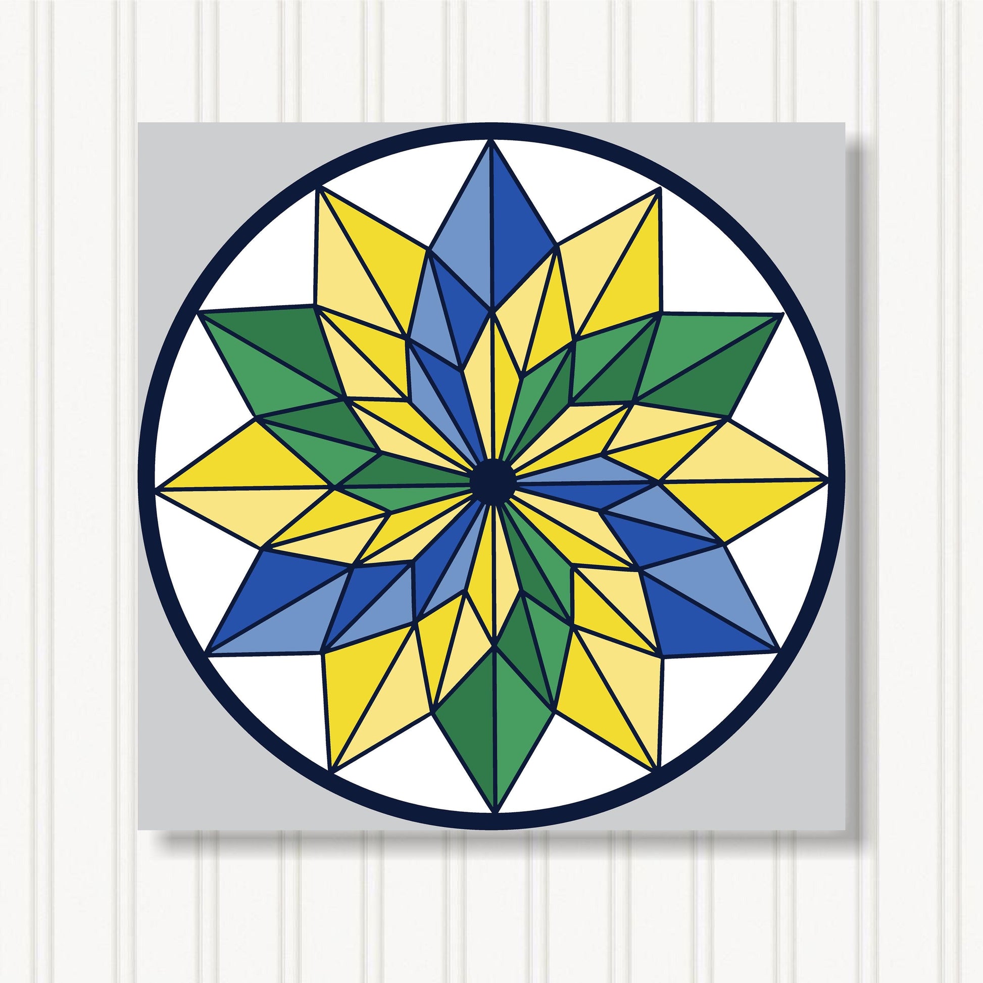 Our outdoor barn quilts are premium quality that will be long lasting. Once installed at the top of a barn gable or anywhere you mount them, they won't need repainting every few years like a painted wood quilt. Our squares are crafted from ½” building-grade PVC for the 8", 11.5", 18", 23.5", 34" and 46" sizes or ¼” alumacorr for the 72" (shipped in 4 - 36"x36" pieces) and 92” sizes (shipped in 4 - 46"x46" pieces). The Barn Quilt Outdoor Signs are printed with UV Ink and weather stable automotive grade decal vinyl and then laminated with a glossy clear laminate to give long-lasting protection from the sun's UV rays. We use this same combination for thousands of signs we ship around the country every year.