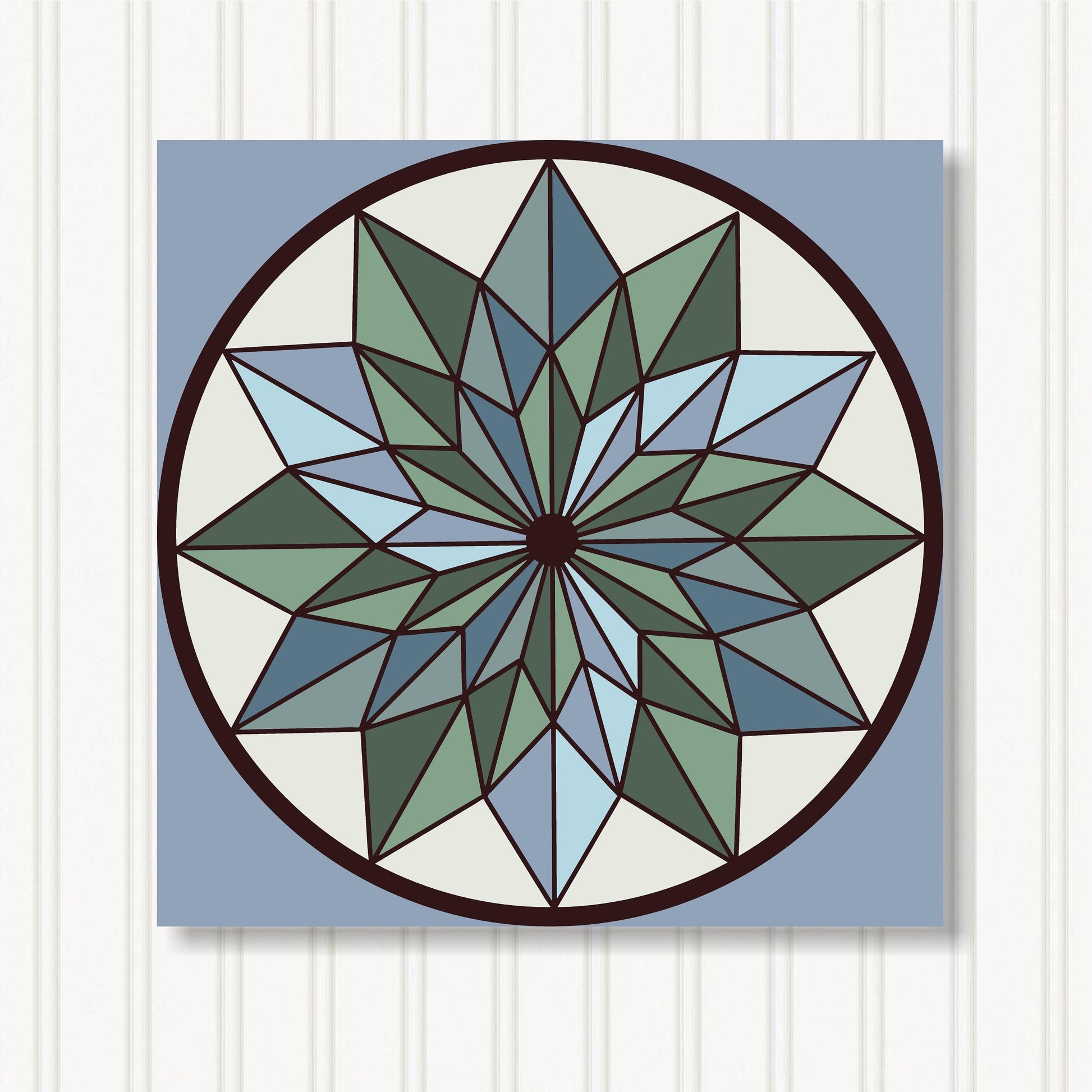 Our indoor barn quilts are crafted from 3/4" particle board which makes them thick and sturdy. The Barn Quilt Indoor Canvas Squares and printed with UV Ink on archival canvas that creates a beautiful satin finish. The canvas is stretched around the board and finished with museum quality edges. We include hangers on the back of our barn quilt canvases for mounting them on the wall.