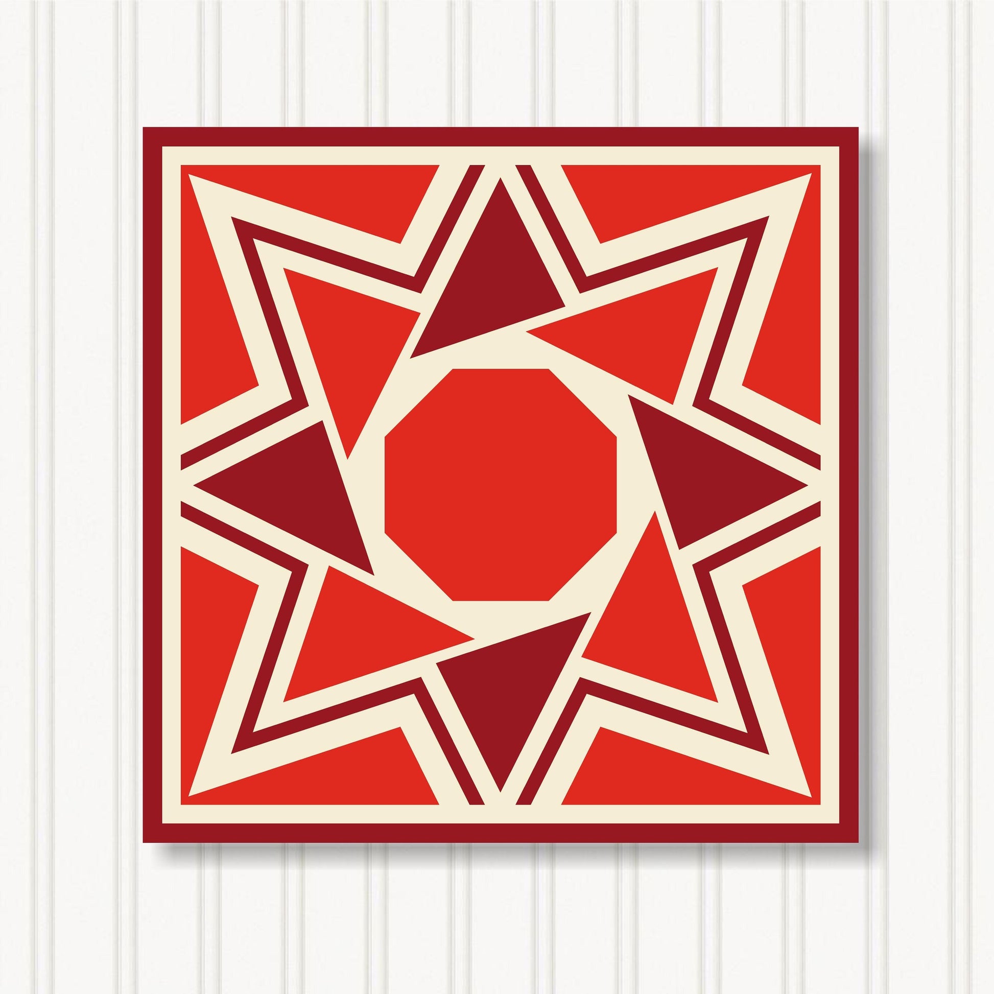 Our indoor barn quilts are crafted from 3/4" particle board which makes them thick and sturdy. The Barn Quilt Indoor Canvas Squares and printed with UV Ink on archival canvas that creates a beautiful satin finish. The canvas is stretched around the board and finished with museum quality edges. We include hangers on the back of our barn quilt canvases for mounting them on the wall.