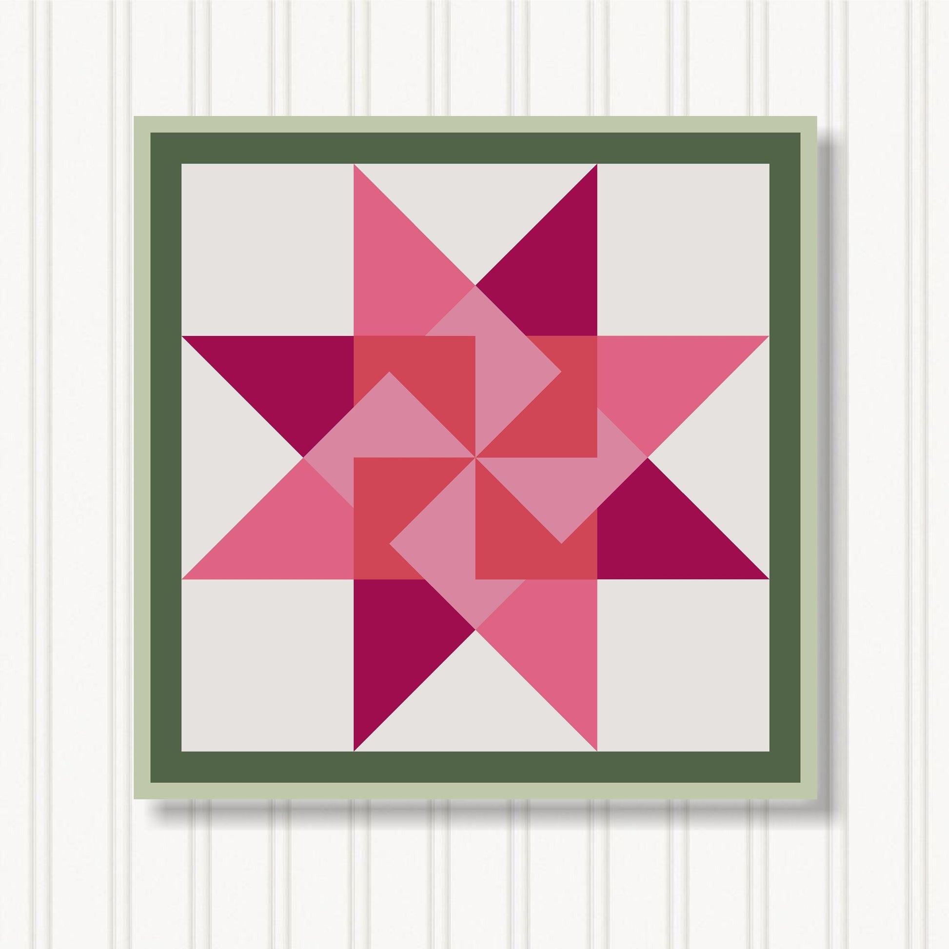 Our indoor barn quilts are crafted from 3/4" particle board which makes them thick and sturdy. The Barn Quilt Indoor Canvas Squares and printed with UV Ink on archival canvas that creates a beautiful satin finish. The canvas is stretched around the board and finished with museum quality edges. We include hangers on the back of our barn quilt canvases for mounting them on the wall.