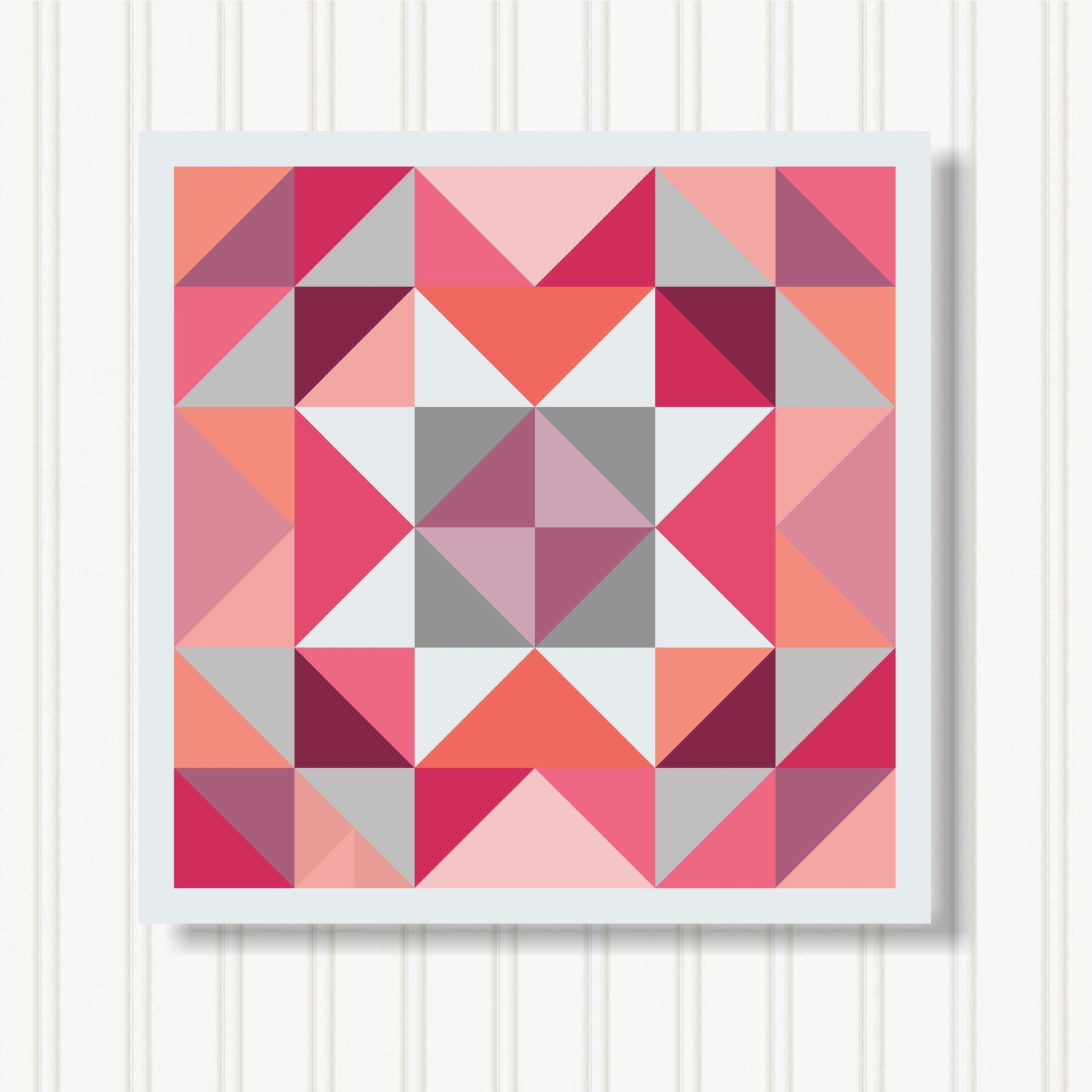 Our indoor barn quilts are crafted from 3/4" particle board which makes them thick and sturdy. The Barn Quilt Indoor Canvas Squares and printed with UV Ink on archival canvas that creates a beautiful satin finish. The canvas is stretched around the board and finished with museum quality edges. We include hangers on the back of our barn quilt canvases for mounting them on the wall.