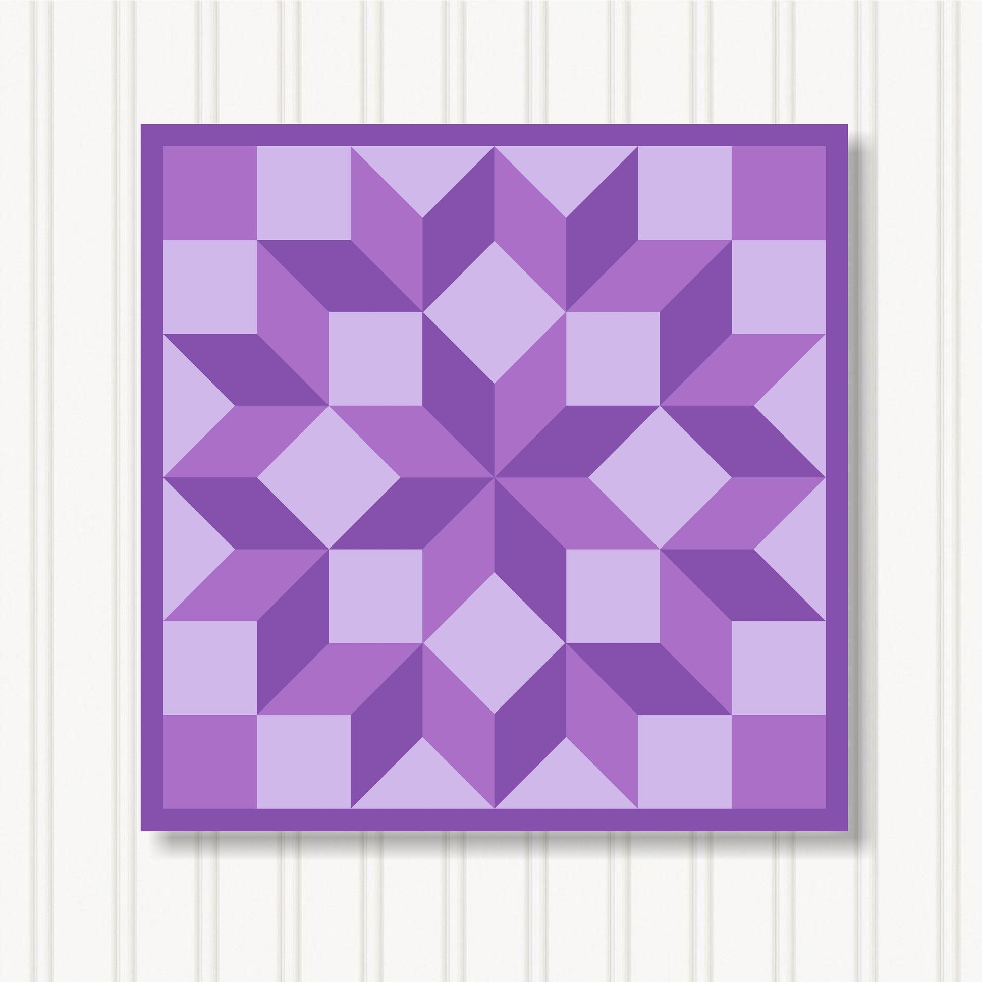 Our indoor barn quilts are crafted from 3/4" particle board which makes them thick and sturdy. The Barn Quilt Indoor Canvas Squares and printed with UV Ink on archival canvas that creates a beautiful satin finish. The canvas is stretched around the board and finished with museum quality edges. We include hangers on the back of our barn quilt canvases for mounting them on the wall.