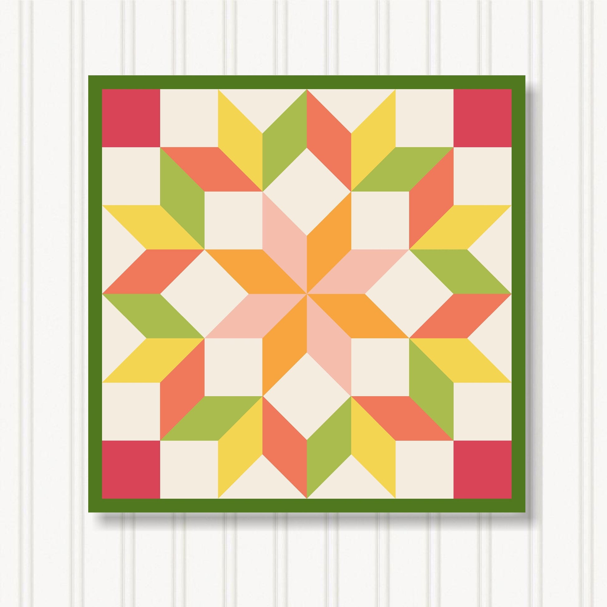 Our indoor barn quilts are crafted from 3/4" particle board which makes them thick and sturdy. The Barn Quilt Indoor Canvas Squares and printed with UV Ink on archival canvas that creates a beautiful satin finish. The canvas is stretched around the board and finished with museum quality edges. We include hangers on the back of our barn quilt canvases for mounting them on the wall.