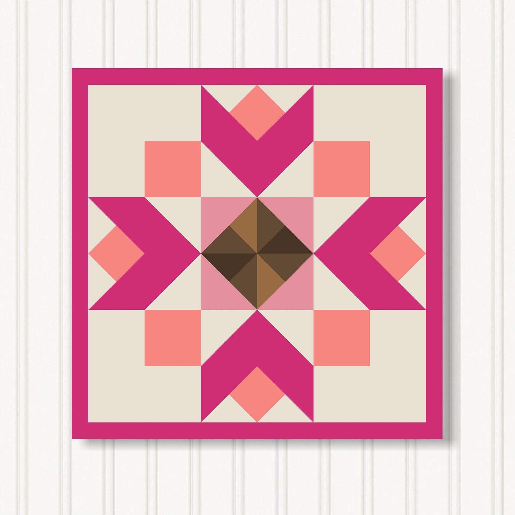Our indoor barn quilts are crafted from 3/4" particle board which makes them thick and sturdy. The Barn Quilt Indoor Canvas Squares and printed with UV Ink on archival canvas that creates a beautiful satin finish. The canvas is stretched around the board and finished with museum quality edges. We include hangers on the back of our barn quilt canvases for mounting them on the wall.