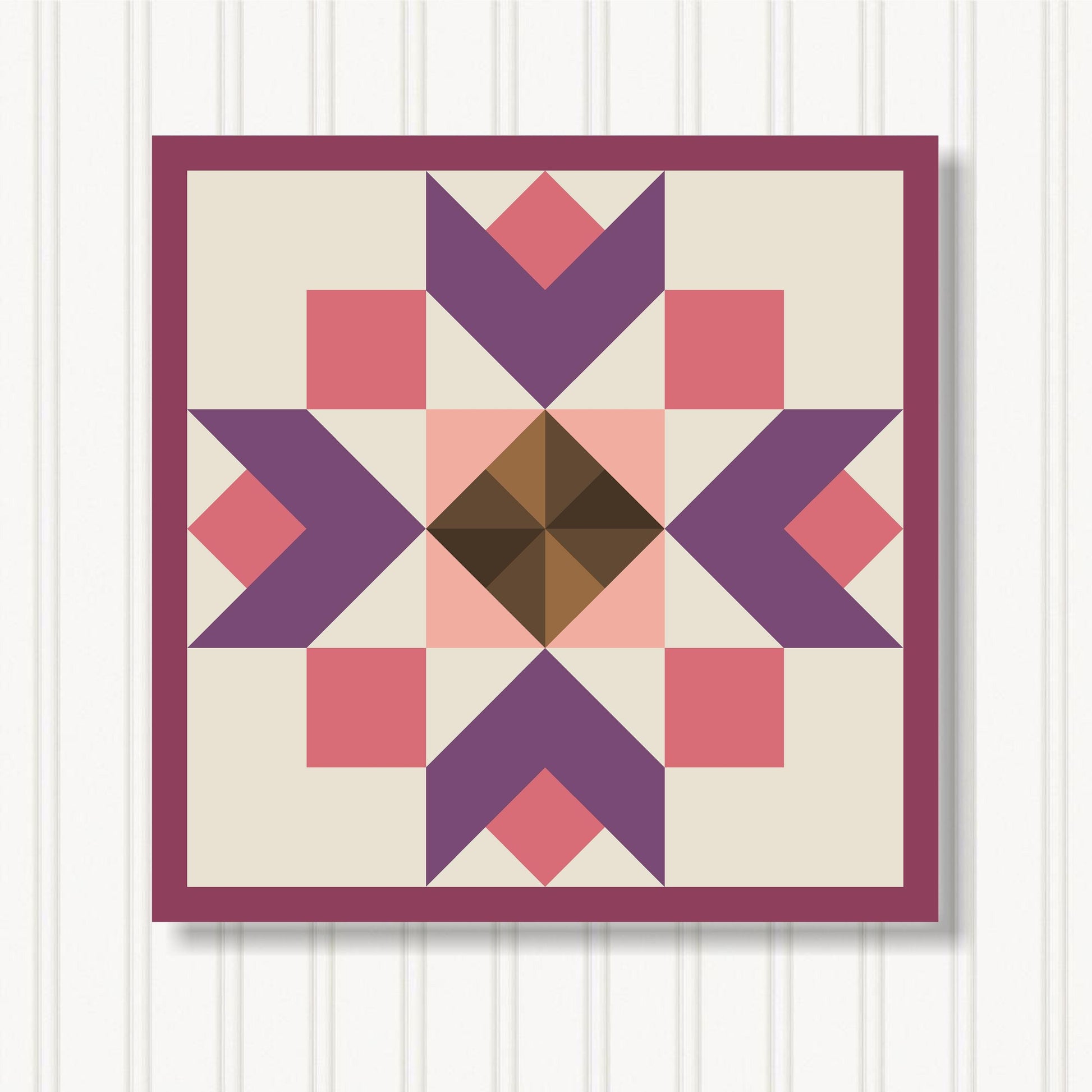 Our indoor barn quilts are crafted from 3/4" particle board which makes them thick and sturdy. The Barn Quilt Indoor Canvas Squares and printed with UV Ink on archival canvas that creates a beautiful satin finish. The canvas is stretched around the board and finished with museum quality edges. We include hangers on the back of our barn quilt canvases for mounting them on the wall.