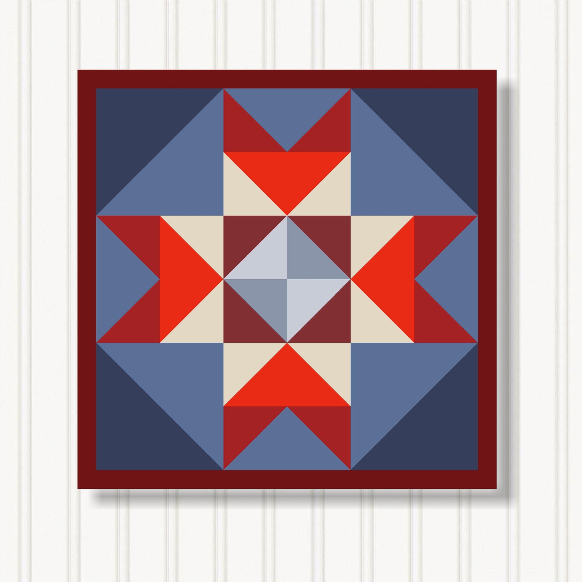 Our indoor barn quilts are crafted from 3/4" particle board which makes them thick and sturdy. The Barn Quilt Indoor Canvas Squares and printed with UV Ink on archival canvas that creates a beautiful satin finish. The canvas is stretched around the board and finished with museum quality edges. We include hangers on the back of our barn quilt canvases for mounting them on the wall.