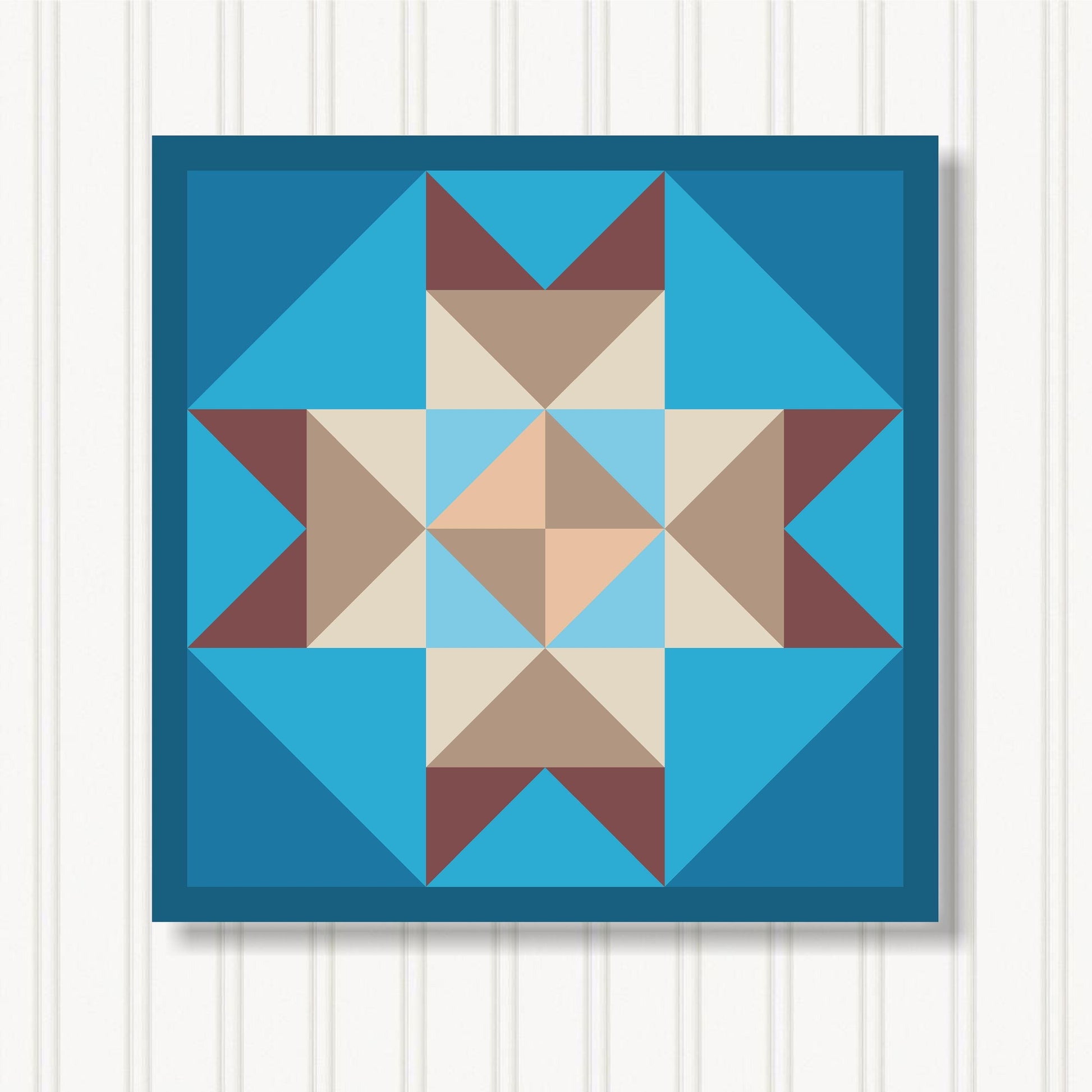 Our indoor barn quilts are crafted from 3/4" particle board which makes them thick and sturdy. The Barn Quilt Indoor Canvas Squares and printed with UV Ink on archival canvas that creates a beautiful satin finish. The canvas is stretched around the board and finished with museum quality edges. We include hangers on the back of our barn quilt canvases for mounting them on the wall.